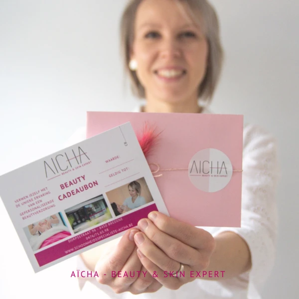 Verras iemand met een cadeaubon van Schoonheidsinstituut Aïcha - goed voor een behandeling of product naar keuze.
